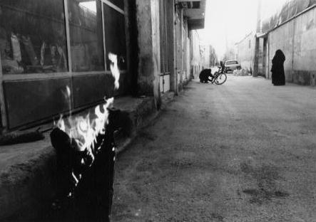 店の前では、暖を取るために火が起こされていた。この写真の右側にはにイマーム広場が広がっている。