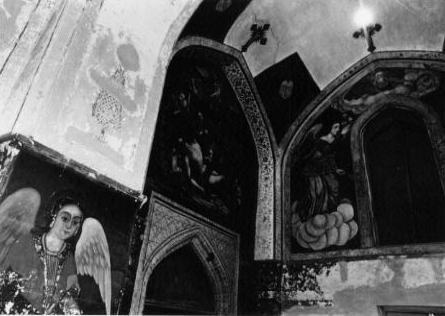 この教会はイスファハンでアルメニア系が多く暮らすジョウルファ地区にある。この写真の中央の入り口から中にはいると内部は宗教画で埋め尽くされている。