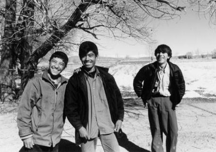【写真】パサルガダルの少年。雪景色の朝を少年達はレスリングに興じていた。近づいていくと3人は近づいてきた。