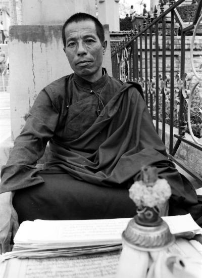 ブッダガヤのチベット僧。撮影後、赤い糸を貰った。