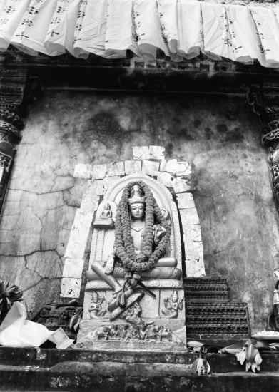大塔に祀られている仏。インドらしく仏にはマリーゴールドが掛かっている。